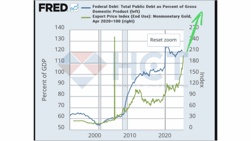 Khi nợ công tăng vọt sau các cuộc khủng hoảng (như 2008 và 2020), giá vàng cũng có xu hướng leo thang, phản ánh vai trò của vàng như tài sản trú ẩn trước rủi ro tài khóa và mất giá tiền tệ. Do vậy, khi các gói ngân sách của Trump khiến nợ công tiếp tục tăng mạnh trong thời gian tới, vàng có khả năng được hỗ trợ mạnh.