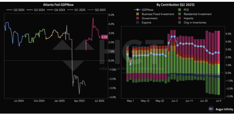 Tăng trưởng GDP quý 2 của Mỹ theo Fed Atlanta hiện giữ ở mức 2,6%, không đổi so với tuần trước. Tuy vẫn tăng trưởng dương, nhưng đà phục hồi đang suy yếu rõ rệt.
