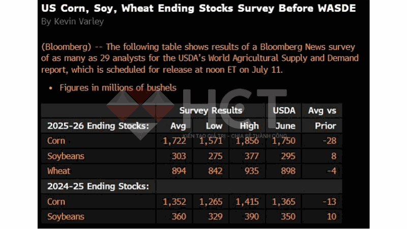 6. Thị trường kỳ vọng tồn kho ngô và lúa mì giảm nhẹ so với báo cáo trước, trong khi đậu nành có xu hướng tăng tồn kho có thể gây áp lực lên giá nếu USDA xác nhận điều này.