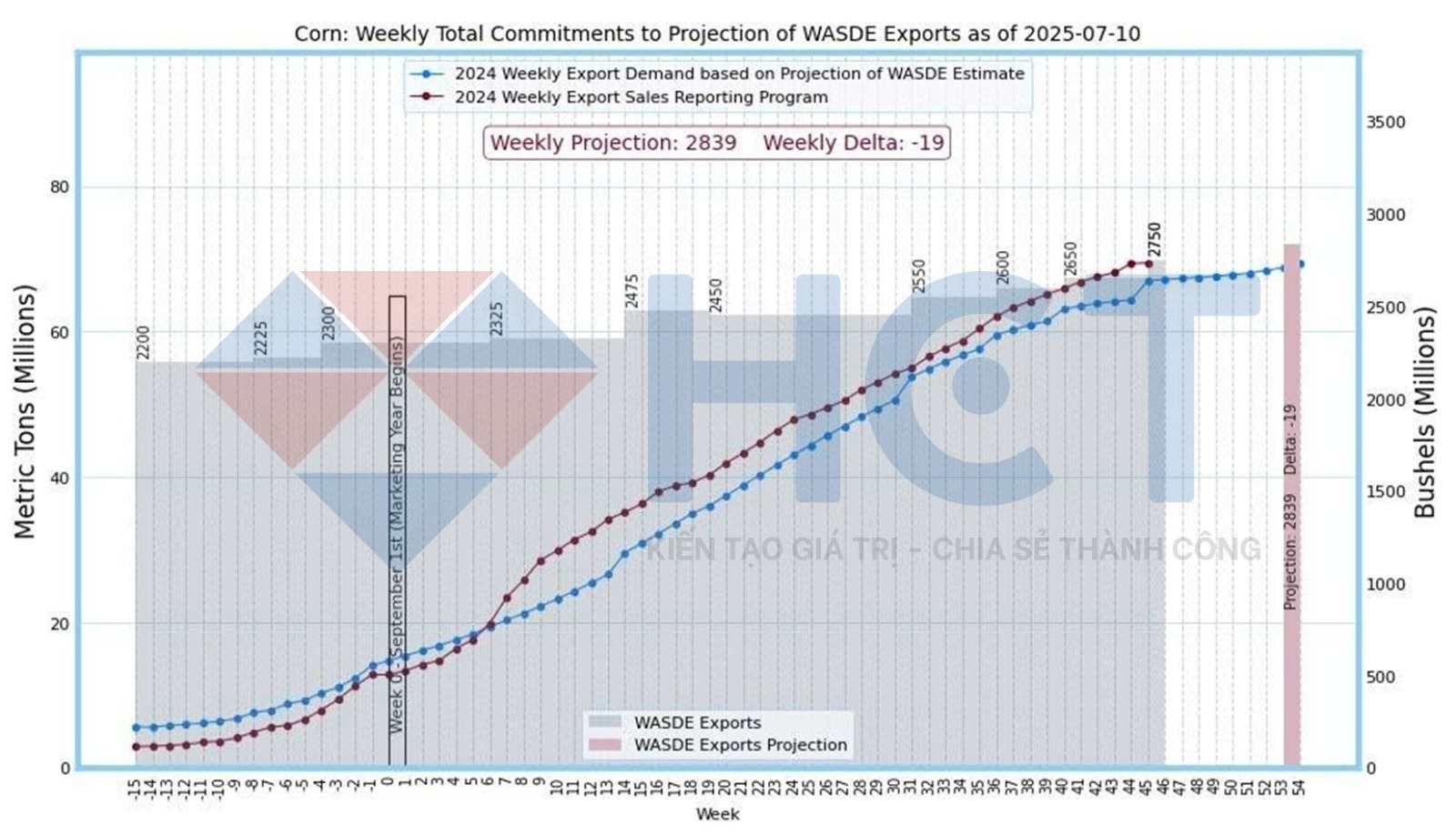 5. Xuất khẩu ngô vụ cũ của Mỹ đã giảm so với tuần trước và hiện tại đã sát với dự báo của WASDE.