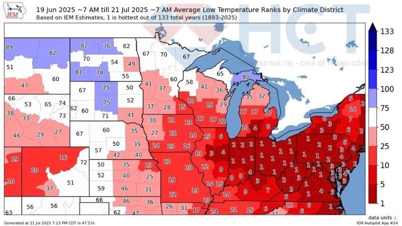 1. Trong 30 ngày qua, nhiều khu vực thuộc vành đai ngô đã ghi nhận nhiệt độ ban đêm cao kỷ lục kể từ giữa tháng Sáu, dù lượng mưa rất dồi dào. Tuy nhiên, nhiệt độ ban đêm cao lại gây hại cho năng suất ngô hơn cả nhiệt độ ban ngày. Với điều kiện thời tiết như vậy, mục tiêu năng suất ngô đạt trên 185 giá/mẫu đang bị đặt dấu hỏi lớn.
