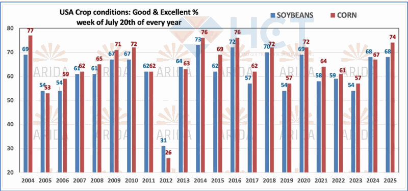 8. Tình trạng mùa vụ ngô và đậu tương tại Hoa Kỳ từ 2004 - 2025
