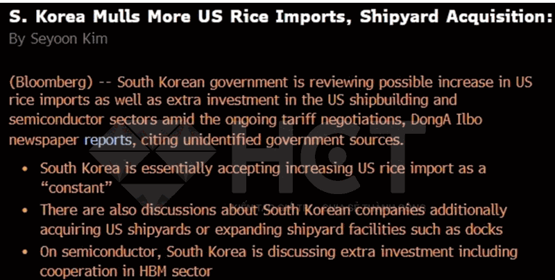 7. Các cuộc đàm phán về thuế quan đã khiến Nhật Bản tăng nhập khẩu hàng hóa từ Mỹ lên tới 75% (không nêu rõ mốc thời gian), và hiện nay Hàn Quốc cũng bày tỏ sẵn sàng gia tăng khối lượng nhập khẩu từ Mỹ. Tuy chưa có thông tin chi tiết, nhưng đây là một tín hiệu tích cực và đáng chú ý.