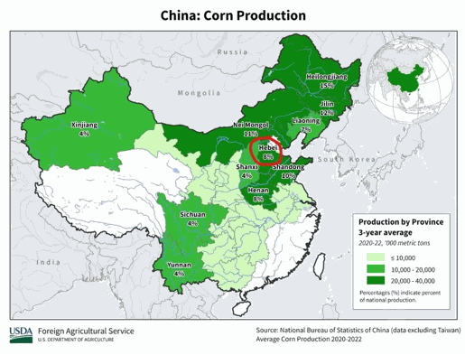 6.Văn phòng USDA tại Bắc Kinh dự báo Trung Quốc sẽ đạt sản lượng ngô kỷ lục trong niên vụ 2025/26, ước tính đạt 298 triệu tấn tăng 1% so với năm ngoái và cao hơn 3 triệu tấn so với dự báo chính thức của USDA. H
