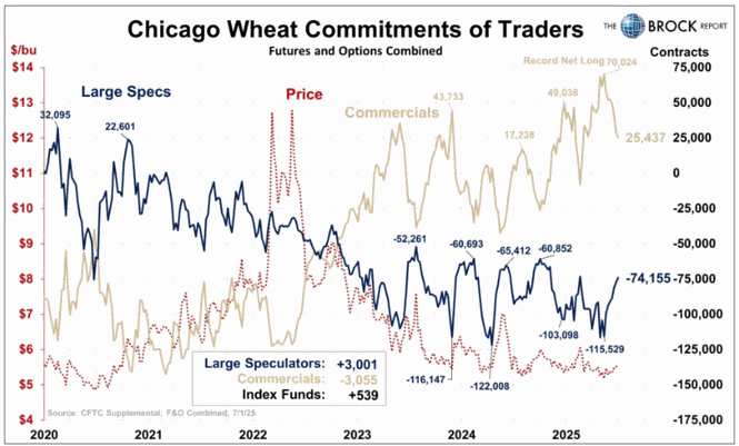 8. Báo cáo COT về lúa mì cho thấy tín hiệu tích cực hiếm hoi trên thị trường ngũ cốc, khi các quỹ đầu cơ đang liên tục đóng vị thế bán, còn nhóm thương mại mua ròng kỷ lục. Dù giá lúa mì SRW chưa phục hồi mạnh, nhưng đã có dấu hiệu cải thiện. Việc các quỹ lớn và quỹ chỉ số bắt đầu mua vào, trong khi vẫn còn thấp hơn mức trung bình dài hạn, được kỳ vọng sẽ tiếp tục hỗ trợ thị trường.