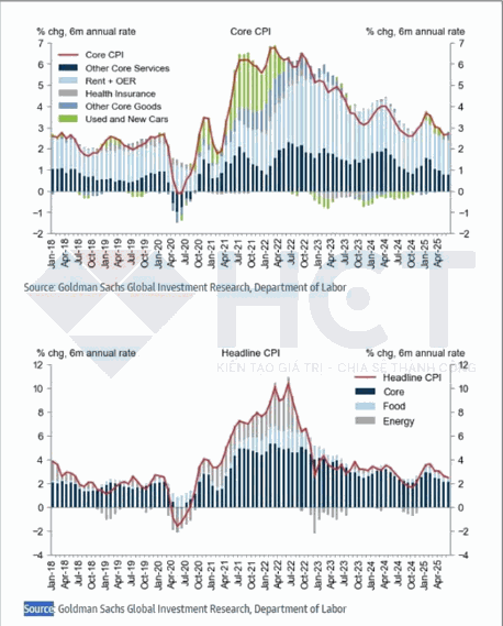 Theo Goldman Sachs, trong báo cáo CPI tháng 6, giá chỗ ở và ô tô đã giảm, làm giảm chỉ số CPI lõi. Tuy nhiên, giá đồ gia dụng và dịch vụ chăm sóc y tế tăng lên, có thể phản ánh tác động từ thuế quan. Các thành phần nhà ở vẫn duy trì mức tăng ổn định. Dự báo chỉ số PCE lõi đã tăng 0.29% trong tháng 6, cao hơn dự báo trước đó, tương ứng với tỷ lệ tăng so với cùng kỳ năm trước là 2.75%.