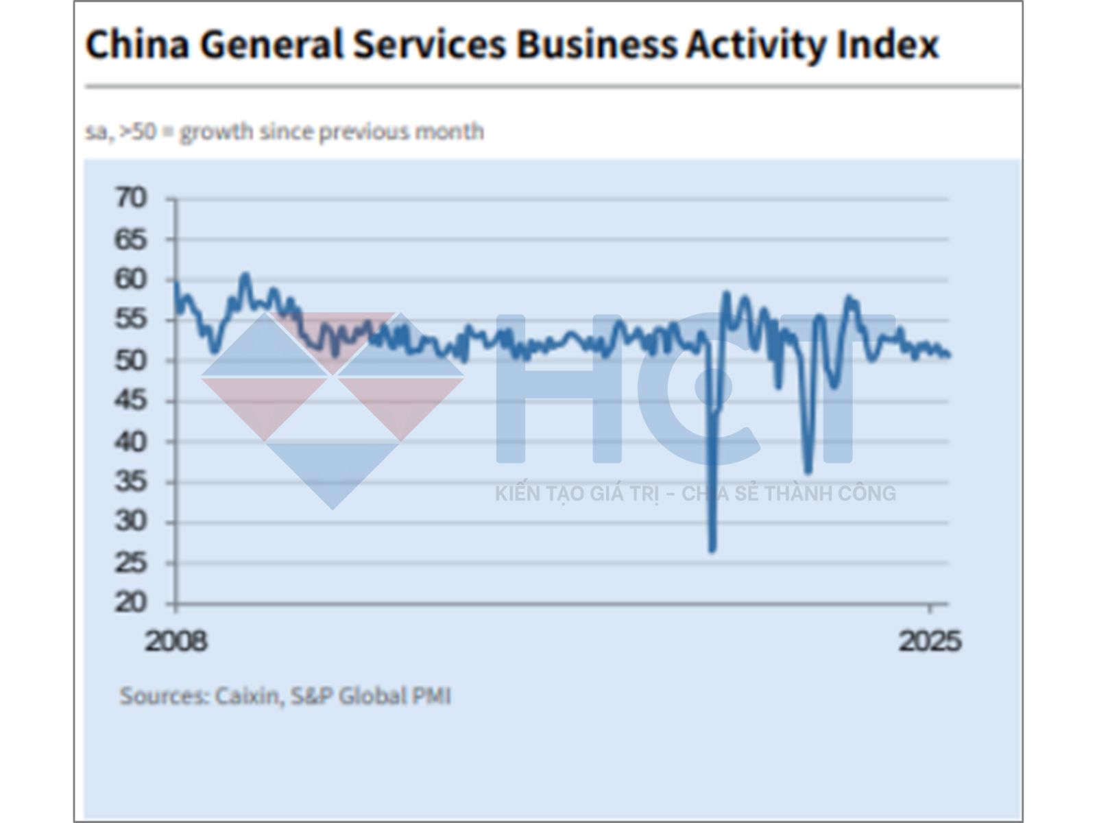 Chỉ số PMI dịch vụ khu vực tư nhân của Trung Quốc giảm nhẹ xuống 50.6 trong tháng 6, từ mức 51.1 của tháng 5, nhưng vẫn nằm trong vùng mở rộng. Tuy nhiên, báo cáo cho thấy xuất khẩu tiếp tục suy giảm, với đơn hàng xuất khẩu mới giảm tháng thứ hai liên tiếp và tốc độ giảm nhanh nhất kể từ tháng 12/2022.