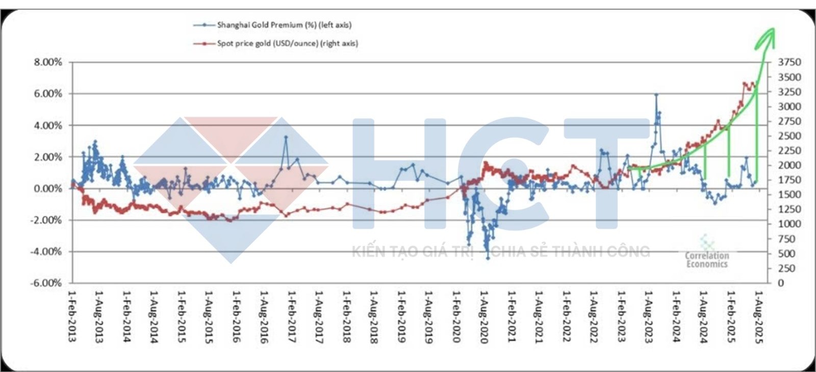 Giá vàng vẫn đang trong xu hướng tăng mạnh. Đáng chú ý là chênh lệch giá vàng Thượng Hải so với thế giới vẫn duy trì ổn định, cho thấy đây không phải là đỉnh bong bóng, mà là một xu hướng tăng bền vững. Việc giữ vững mức chênh lệch ổn định cho thấy nhu cầu vật chất tại Trung Quốc vẫn đang hỗ trợ thị trường.