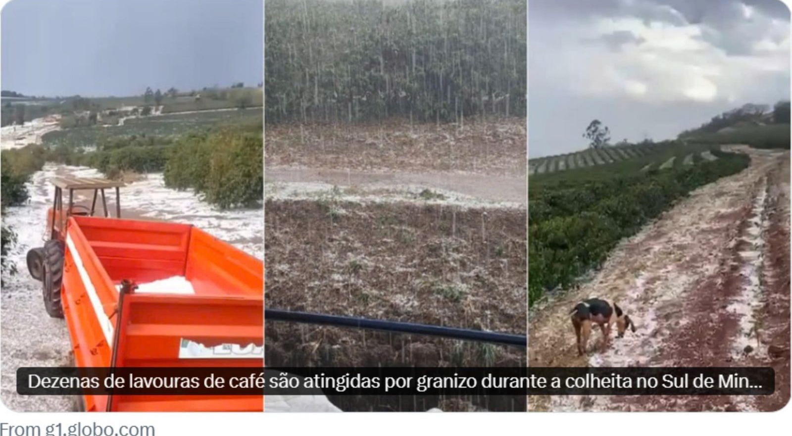 Brazil vừa hứng chịu một thảm họa nghiêm trọng đối với ngành cà phê khi mưa đá dữ dội tấn công các vùng trồng trọng điểm trong 24 giờ qua. Ít nhất 17 khu vực thuộc bang Minas Gerais nơi sản xuất cà phê hàng đầu của Brazil đã bị ảnh hưởng nặng nề. Thiệt hại lan rộng đến các vùng Alta Mogiana, Cerrado Mineiro và Matas de Minas. Đặc biệt, tại Monte Santo de Minas, khoảng 60% trang trại cà phê báo cáo bị mưa đá tấn công trực tiếp với mức độ thiệt hại nghiêm trọng.