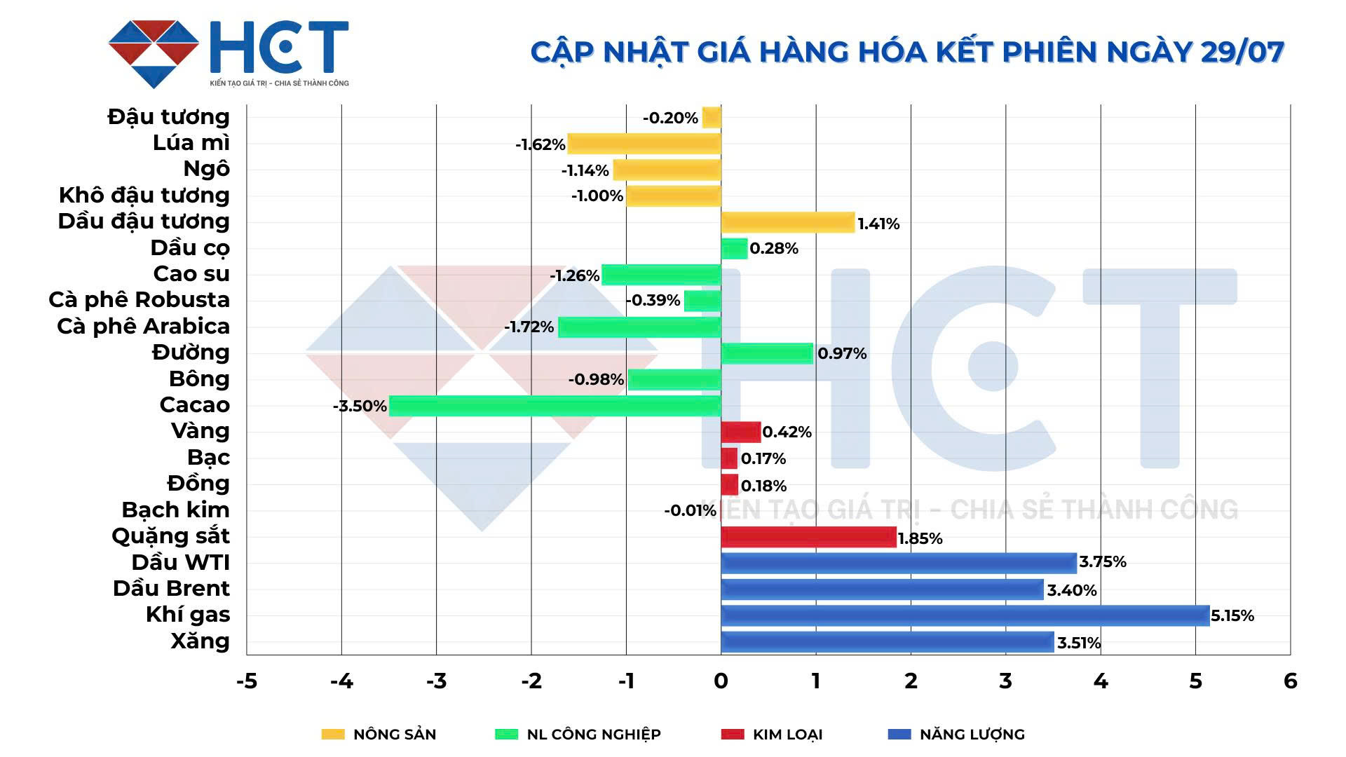 Biến động giá một số loại hàng hóa quan trọng kết phiên ngày 29/7/2025: