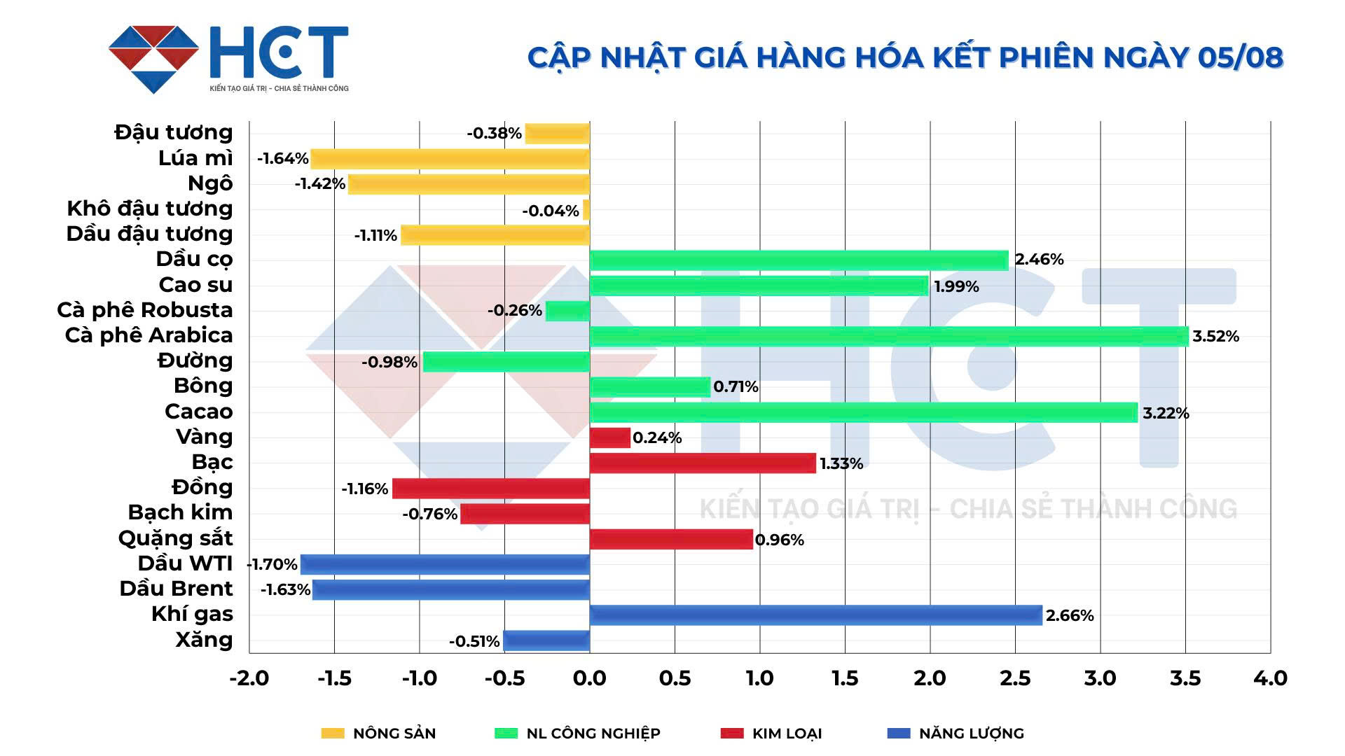 Biến động giá một số loại hàng hóa quan trọng kết phiên ngày 5/8/2025:
