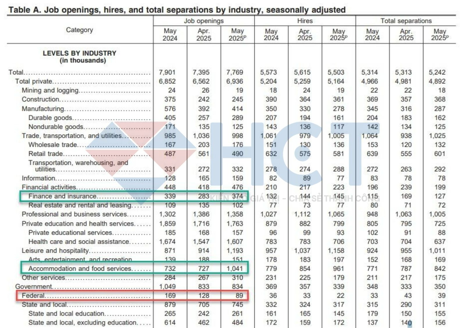 Số việc làm mở trong tháng 5 tại Mỹ đạt 7.769 triệu