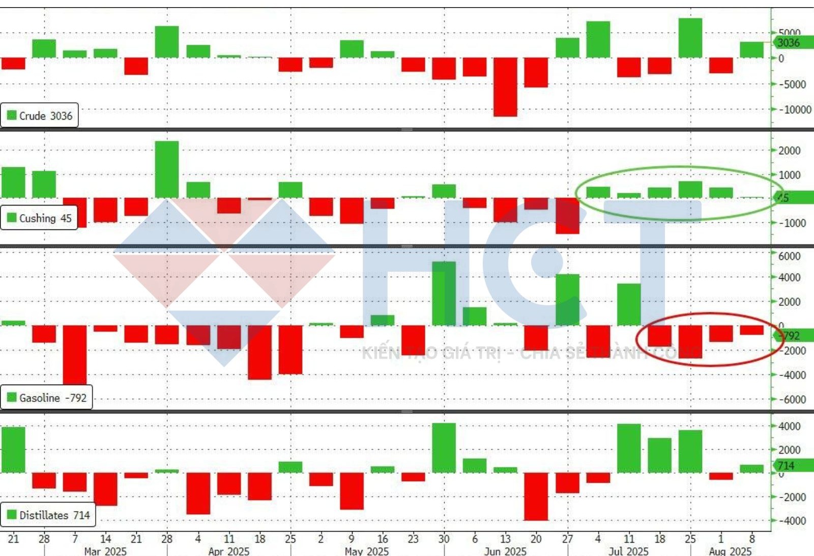 Tồn kho xăng -0.8 triệu thùng, vẫn giảm nhưng ít hơn -1 triệu dự báo