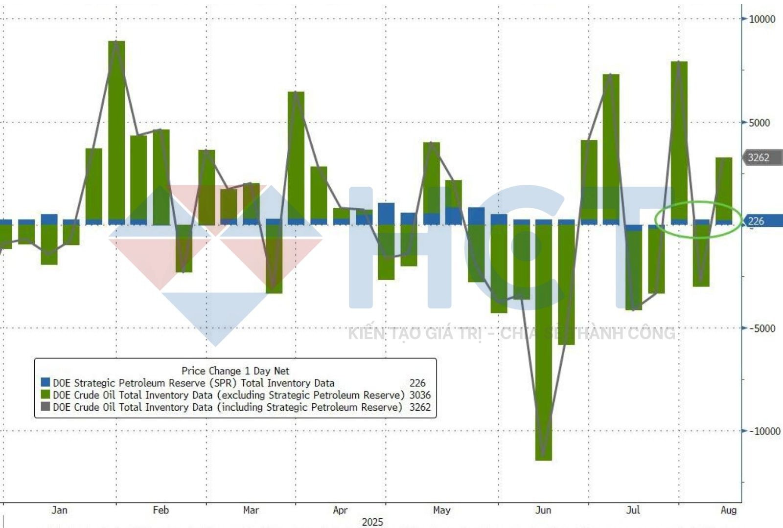 Tồn kho dầu tăng +3 triệu thùng ngược lại mức giảm -0.9 triệu dự báo, xóa mức giảm -3 triệu thùng tuần trước