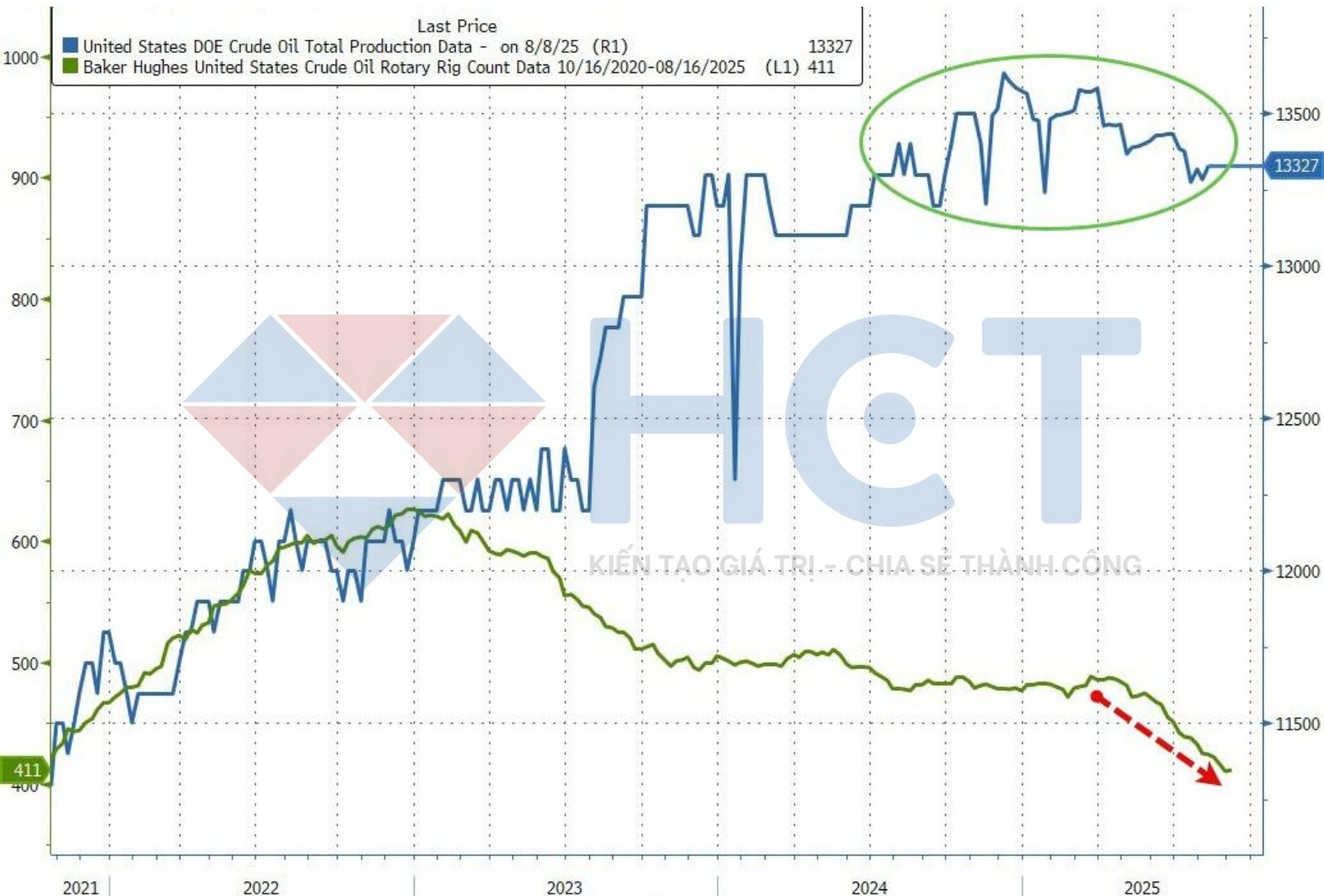 Sản lượng dầu tăng nhẹ nhưng số giàn khoan tiếp tục giảm