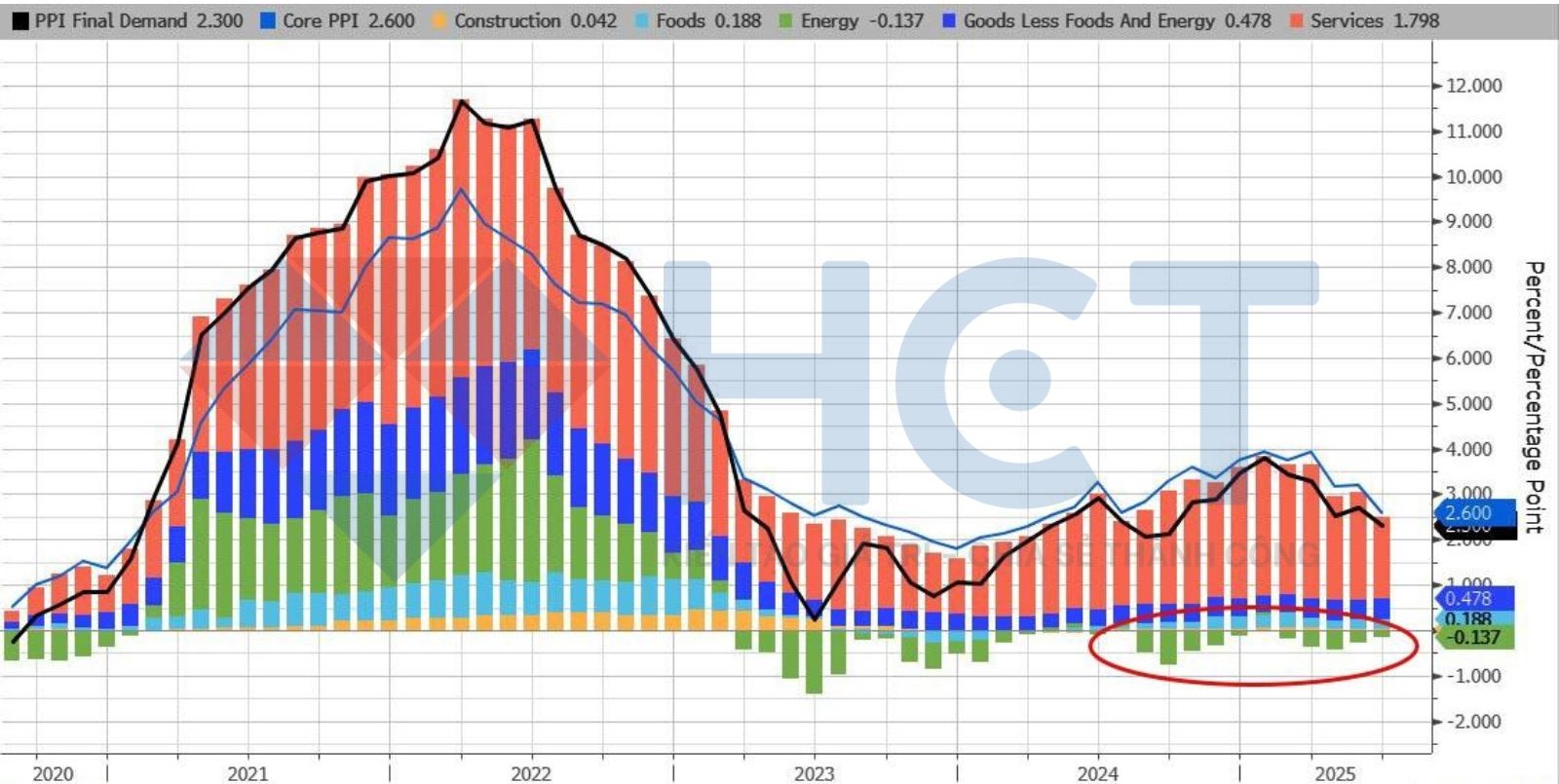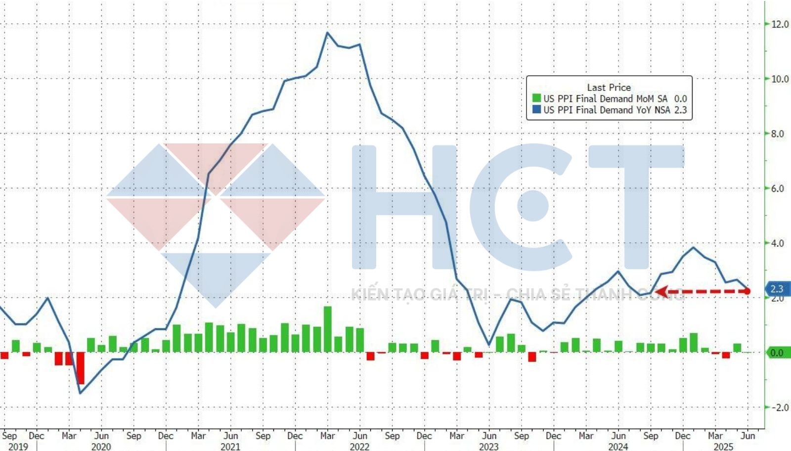 PPI tổng thể tăng +2.3% YoY so với +2.5% dự báo, mức thấp nhất kể từ tháng 9/2024