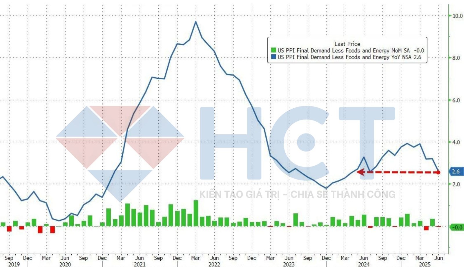 PPI lõi tăng +2.6% YoY dưới +2.7% dự báo, thấp nhất kể từ tháng 03/2024