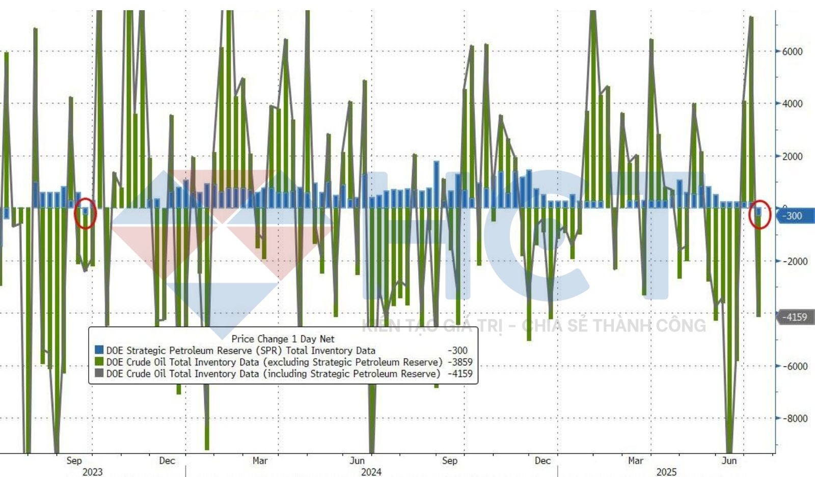 Tồn kho dầu giảm -3.86 triệu thùng, giảm nhiều hơn dự kiến -0.552 triệu thùng