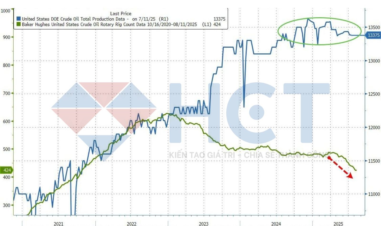 → Ngược lại với tuần trước, cho thấy nhu cầu năng lượng chưa có vấn đề nhưng số lượng giàn khoan tiếp tục lao dốc đã bắt đầu đạt tới mức báo động