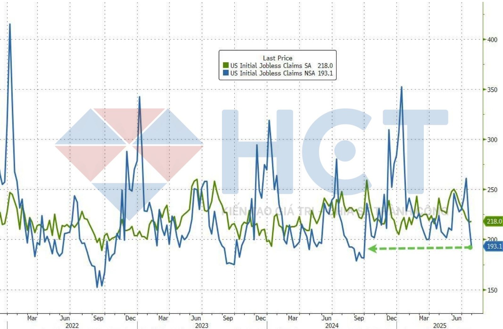 Dữ liệu chưa điều chỉnh theo mùa (NSA): Giảm xuống còn 193,000 đơn, mức thấp nhất trong vòng 10 tháng