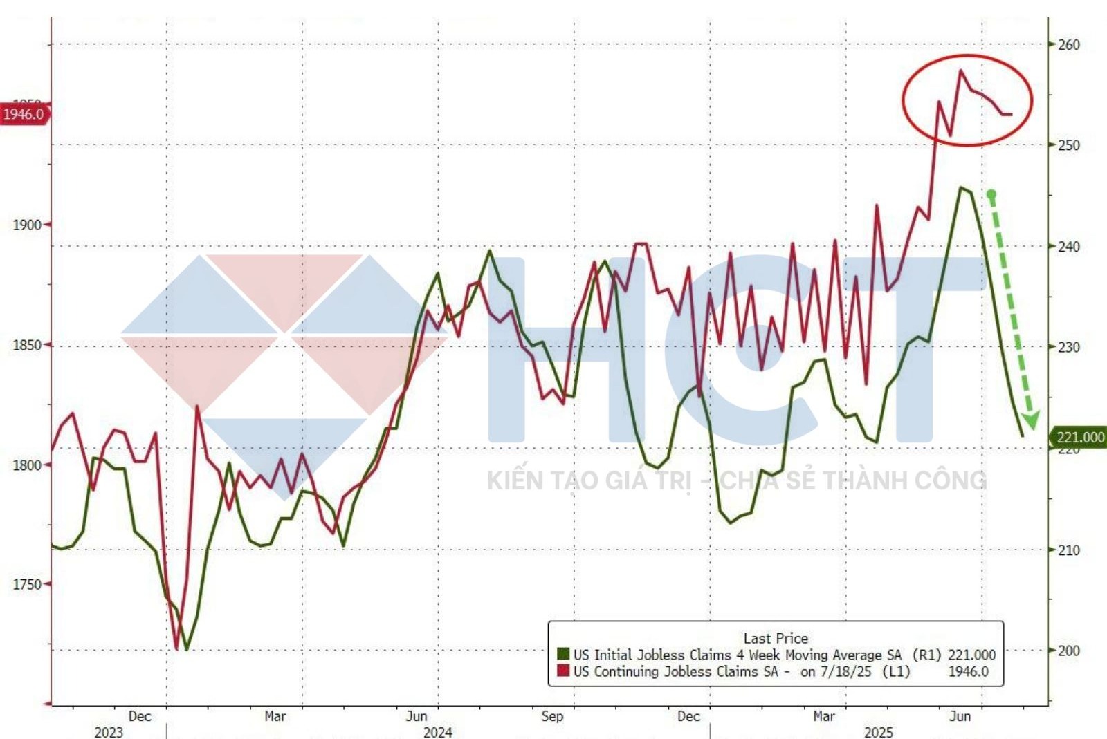 Dữ liệu theo mùa (SA): 218,000 đơn, tăng nhẹ +1,000 so với tuần trước