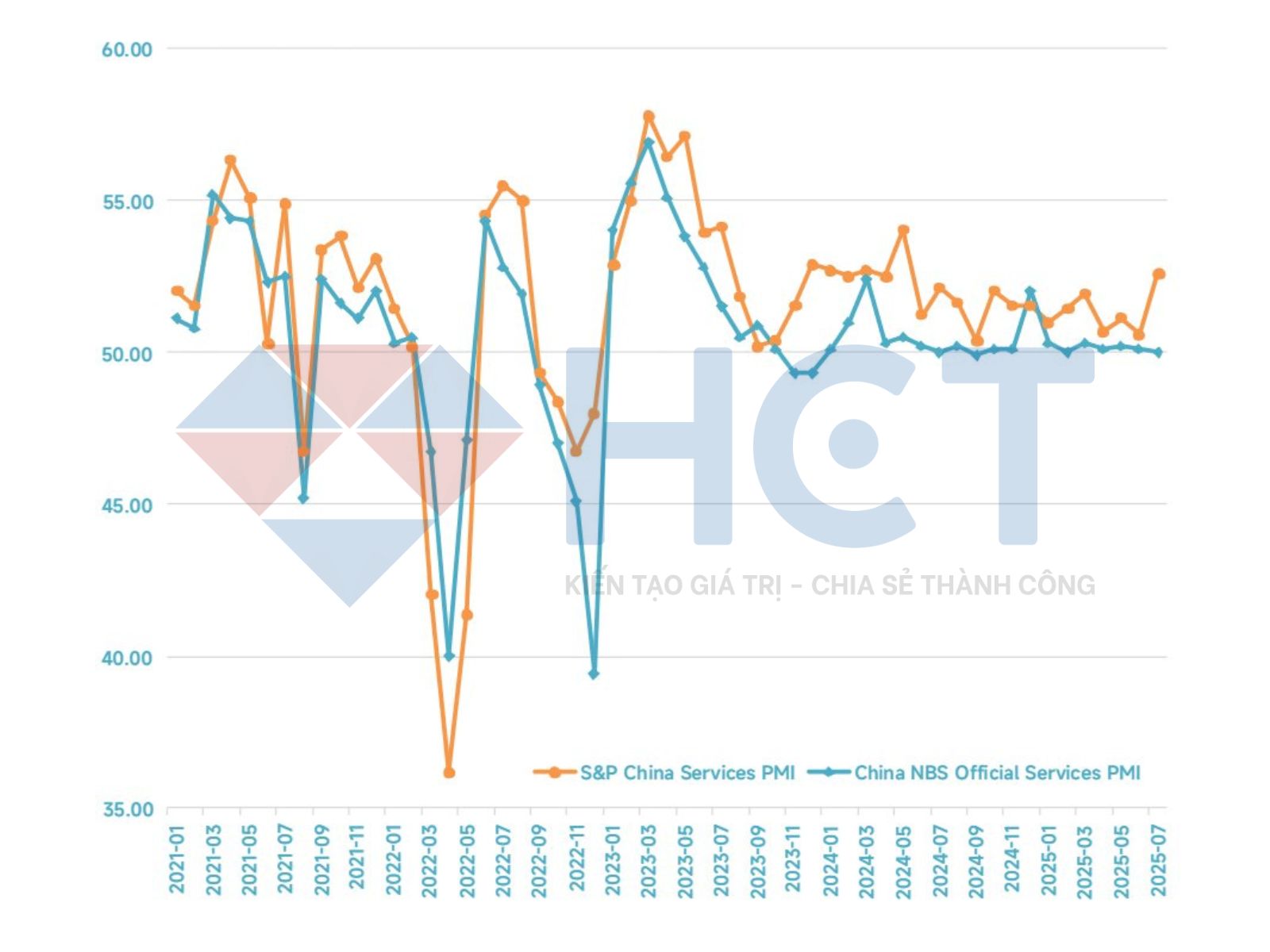 PMI dịch vụ Trung Quốc tháng 7 tăng trưởng mạnh, đạt 52.6, vượt 50.4 dự báo và 50.6 tháng trước, cao nhất kể từ đầu 2025