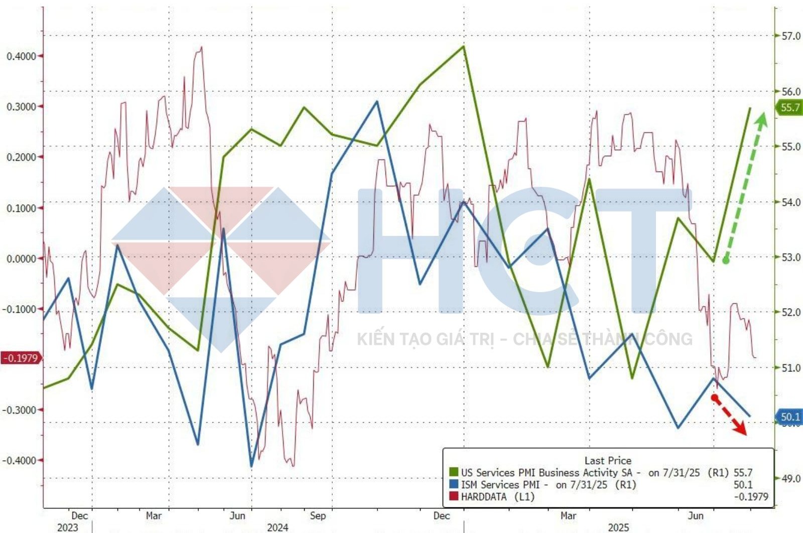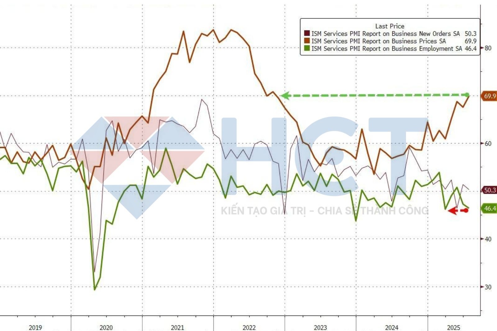 Giá dịch vụ tăng 69.9, cao hơn 66.5 dự báo và 67.5 tháng trước, cao nhất từ 2022