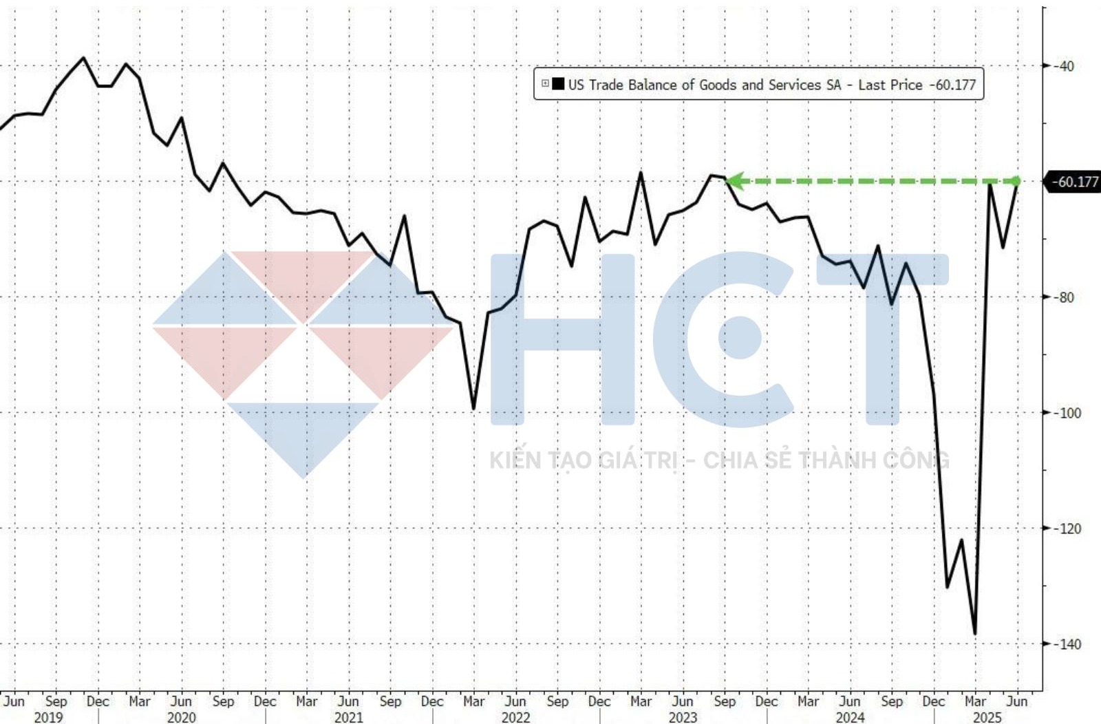 Thâm hụt thương mại của Mỹ trong tháng 6 giảm 16% MoM xuống mức -60.20 tỷ USD, tốt hơn mức -62.60 tỷ dự báo và -71.70 tỷ tháng trước, thấp nhất 3 năm do nhập khẩu giảm mạnh