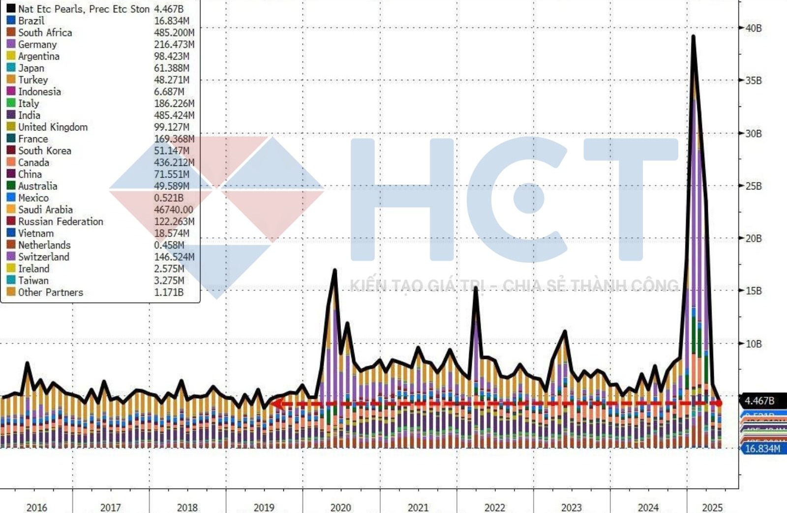 Nhập khẩu hàng hóa giảm -3.7% MoM xuống 337.5 tỷ USD