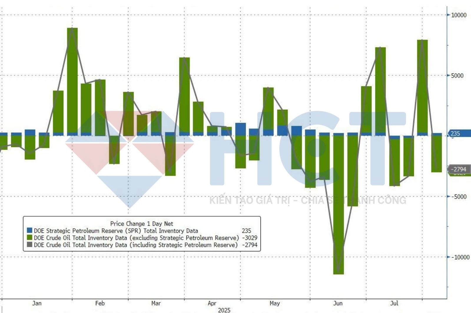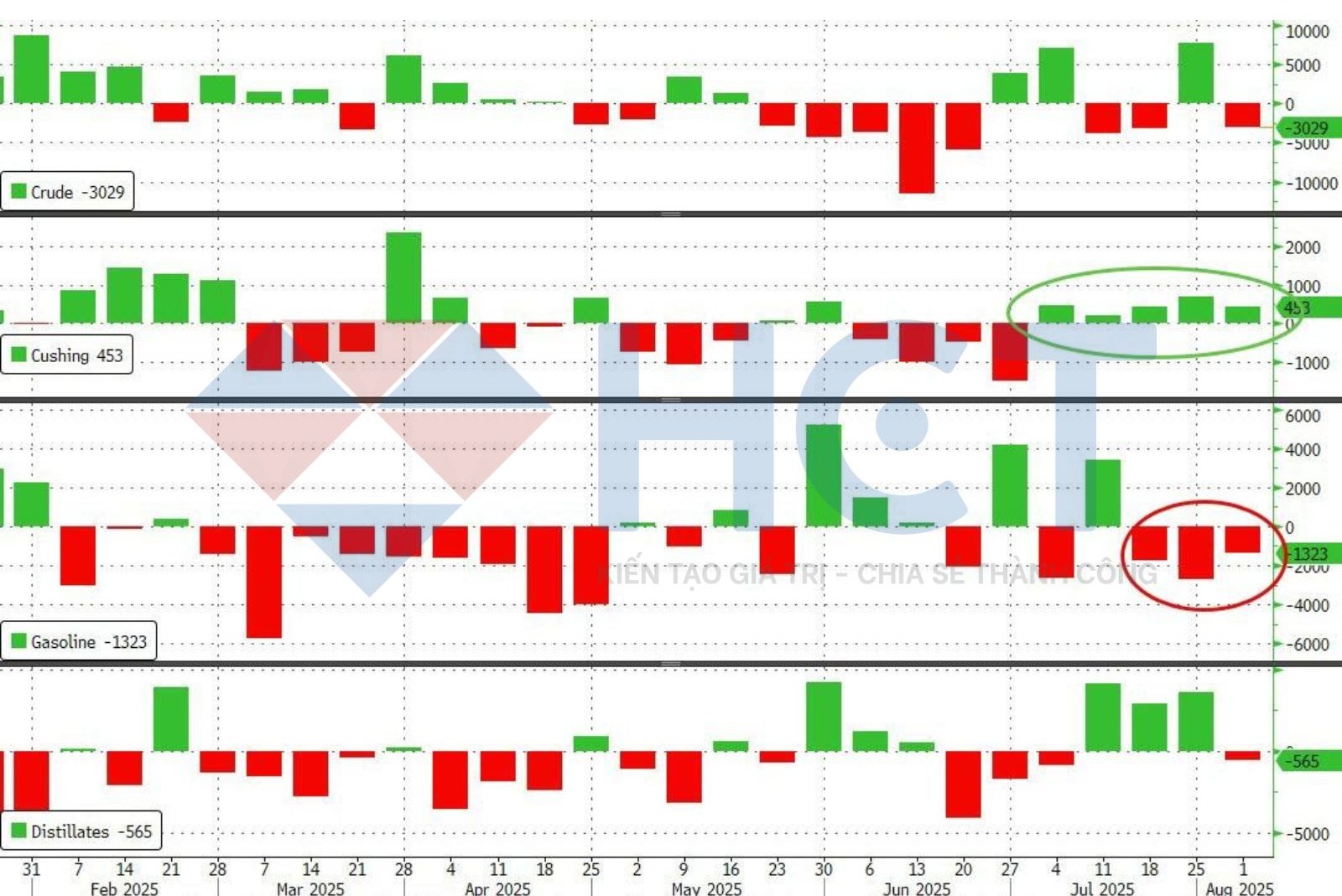 Tồn kho dầu giảm -3.02 triệu thùng thấp hơn +0.2 triệu thùng dự báo, đảo chiều +7.7 triệu thùng tháng trước