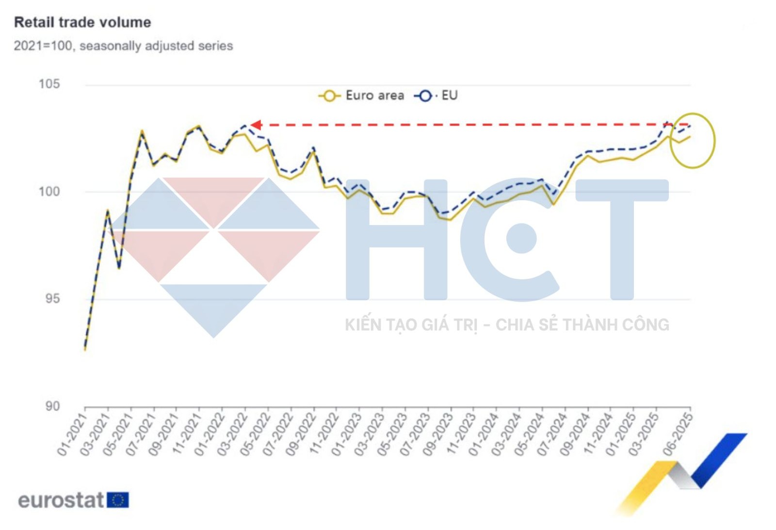 Doanh số bán lẻ EU tháng 6 +3.1% YoY, hơn +2.6% dự báo và +1.9% tháng trước, cao nhất kể từ 06/2022